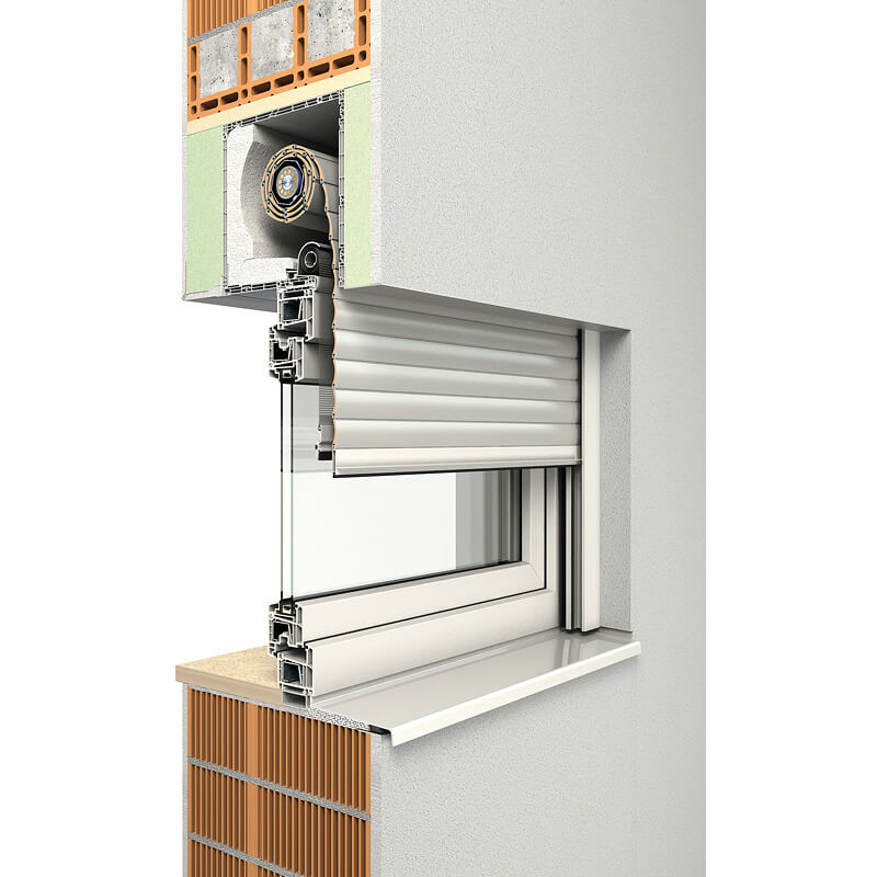 ROMA Aufsatzrollladensysteme werden auf das Fenster montiert und mit diesem zusammen in die Öffnung gebaut. Eine Bauweise, deren Vorteile sich besonders bei der Wärmedämmung zeigen. Die Systeme werden gleichermaßen im Objekt- wie im Privatbau eingesetzt, da auch bei diesen ROMA Systemen die Gestaltungsfreiheit und die Investitionssicherheit gewährleistet sind. Man unterscheidet zwischen Elementen aus Kunststoff mit Styropor-Dämmschale innen und Elementen aus PUR-Hartschaum. Beide Rollladenarten zeichnen sich durch beste Wärmedämmwerte aus. Darüber hinaus kann ein Insektenschutzgitter integriert werden (nicht bei RA.2) oder für Motorbetrieb auf- und nachgerüstet werden.